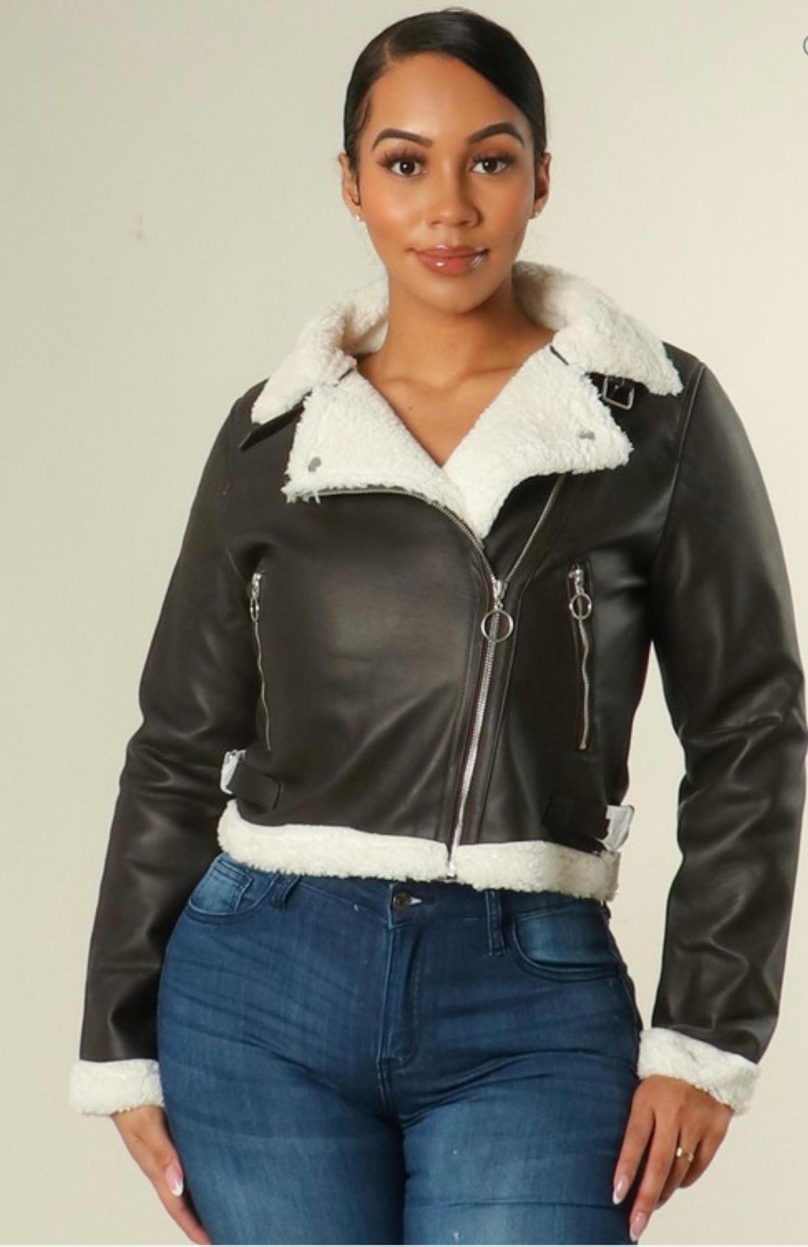 Dark Brown Faux Leather Jacket